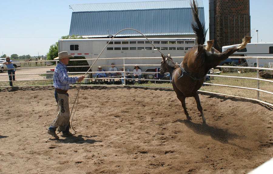 One horse in particular was a big, strong, ranch raised gelding about five years old that I had lots of trouble getting him to go. He'd hang up and then when he would go, he'd kick at my feet and either stampede or buck. He was miserable and I was miserable.